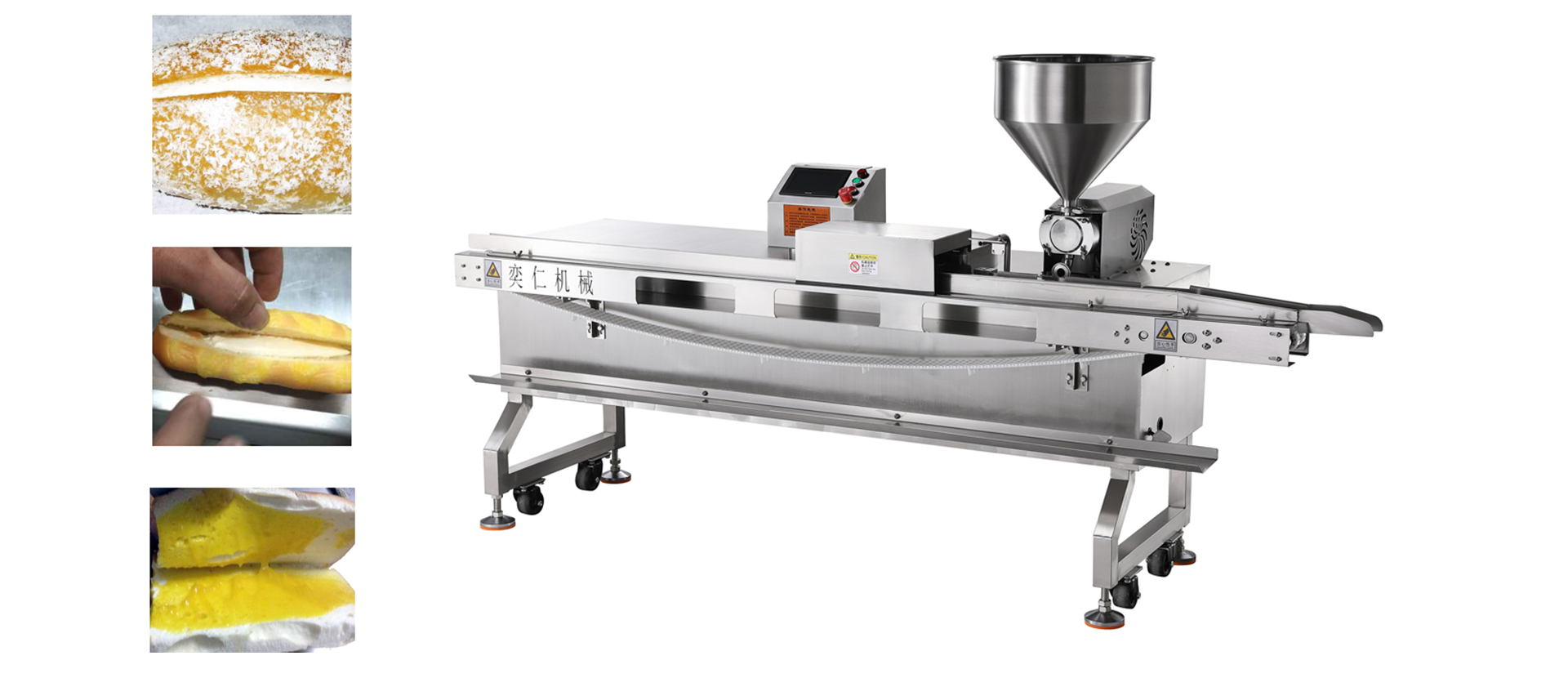 專業(yè)生產各種餅干夾心機、面包夾心機、淋漿機、油炸機等